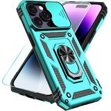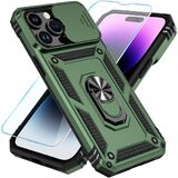 SunStory Compatible with iPhone 14 Pro Case with HD Screen Protector & Slide Camera Cover & Rotated Ring Kickstand, [Military-Grade] Phone Case for iPhone 14 Pro