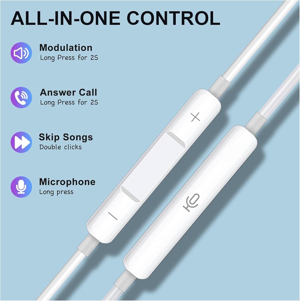 Headphones for iPhone 15/15 Pro/15 Pro Max.16/16 Pro/16 Pro Max ,plug and play,bringing you pure sound quality and balanced strong bass, soaring highs and clear mids.