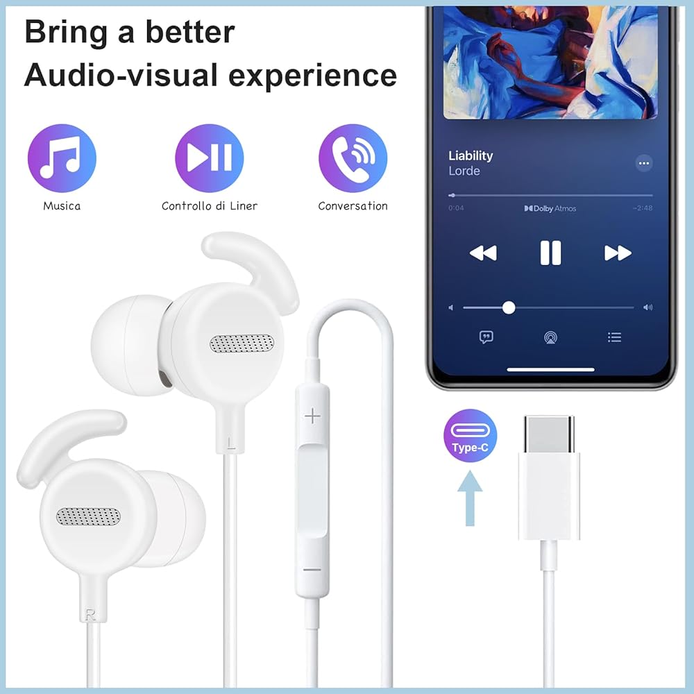 In Ear TYPE C headphones Mainly compatible with iPhone 15/15Plus/15Pro/15 Pro Max 16/16Plus/16Pro/16 Pro Max ,iPad Pro 2020 2021, for iPad Air 4th 2022, for iPad Mini 6th (2021), for MacBook/MacBook Pro, for Samsung Galaxy S21 FE/ S21/ S21 Plus/ S21 Ultra/ S20 FE/ S20/ S20 Plus/ S20 Ultra/ Note 20/ 20 Ultra/ 10/ 10 Plus Galaxy Z fold / flip 3/ S22/ S22+/ S22 Ultra/ A53/ A33/ Galaxy Tab S8+ 5G, Google Pixel 6 6 Pro 5 4a 3a XL 4 XL 3 2 XL and other devices with TYPE C audio port.