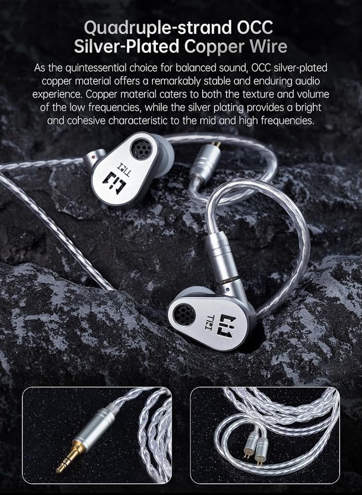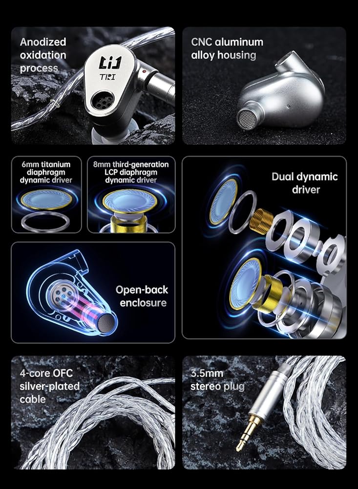 Cohesive midrange for intimate vocals:Thanks to the acoustic design of the front and rear chambers and the crossover tuning of the drivers, the TRI delivers an incredibly expansive soundstage with transparent lows and airy highs. The addition of an independent low-frequency dynamic driver ensures a balanced sound, while the meticulously tuned mid-to-high frequencies exhibit smoothness without any harshness, resulting in exceptional listenability