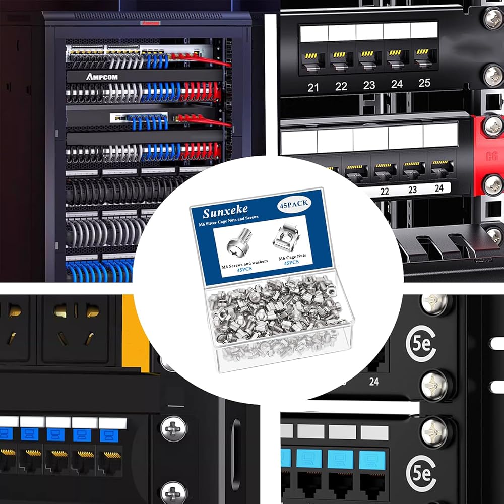 45 Pack M6 x 16mm Rack Mount Screws,Cage Nuts for Rack Mount Server Shelves,Routers,Rack Mount Server Cabinet.Server Rack Screws,Square Insert Nuts and Washers with Box(Silver)