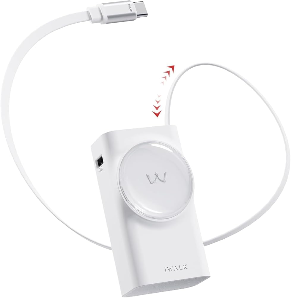iWALK Portable Charger 10000mAh, 30W Fast Charging Power Bank with Built-in 2.3ft USB-C Retractable Cable, Battery Pack with 3 Outputs, Compatible with iPhone 16/15,Samsung Galaxy S25/24,iPad