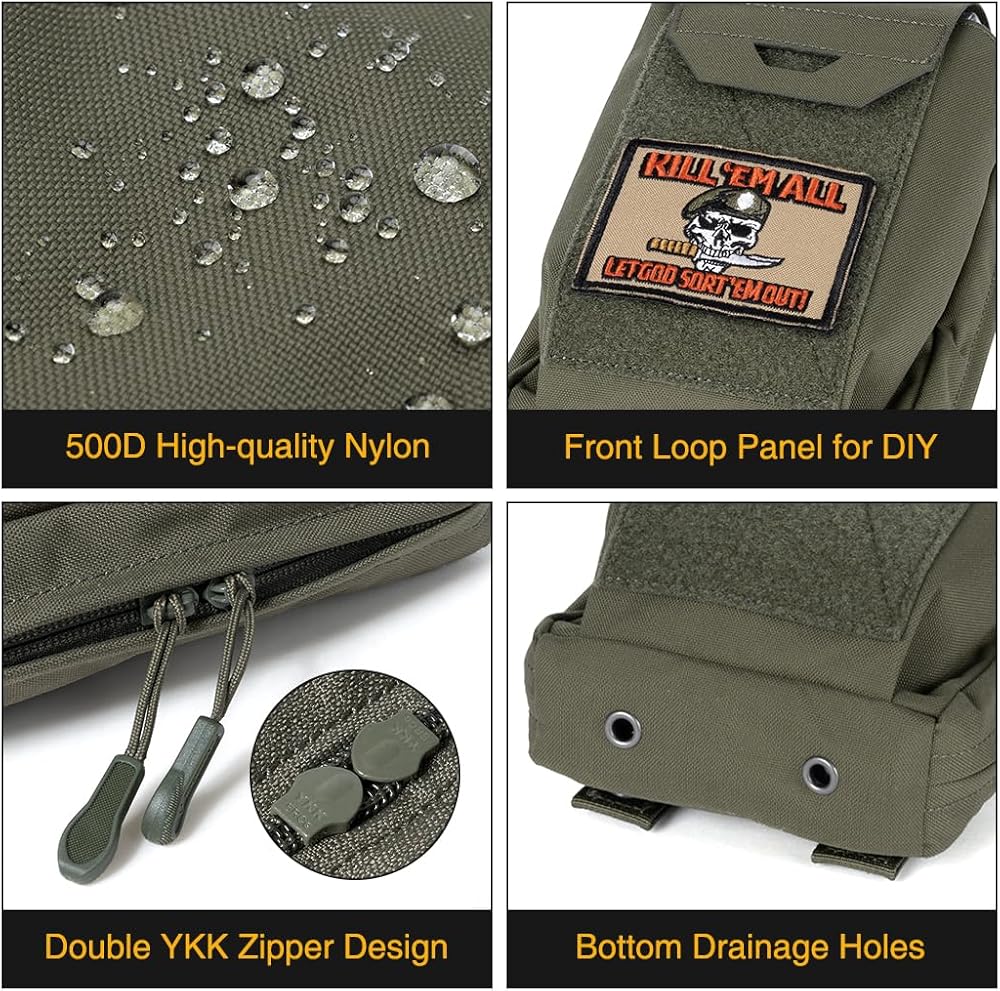 MATERIAL: This tactical dump pouch is made of high-quality 500D nylon fabric and loop panels. Equipped with YKK double zip fasteners. Wear-resistant tear-resistant and durable for long-term use.