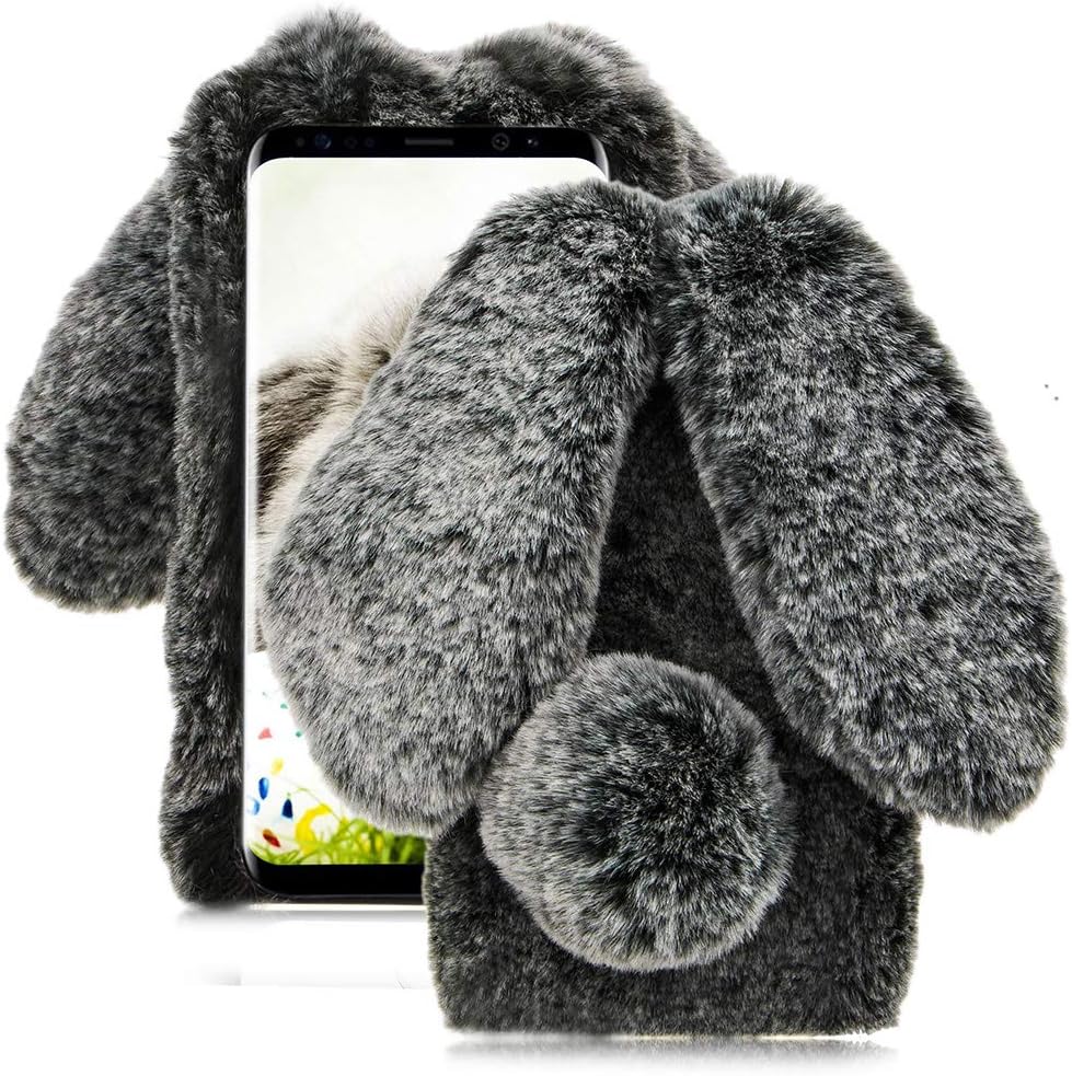 Case for Samsung Galaxy S8 Rabbit, Samsung Galaxy S8 Plush Case, LCHDA Case for Samsung Galaxy S8 Cute Kawaii 3D Rabbit Ear Protective Case Winter Warm Soft Hairy Pattern Soft Silicone TPU Gel Bumper Anti-Shock Dustproof Unbreakable Protective Case Cover with Elegant Glitter Shiny Diamond Rhinestone for Girls Women Children
