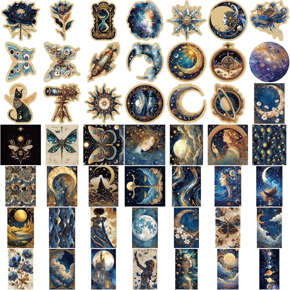 50pcs Vintage Astronomy Stickers, Celestial Sticker Set Laptop Stickers Planet Space Halloween Party Favors, Party Decoration, Retro Galaxy Moon Stickers for DIY Scrapbook Journal (Astronomy)