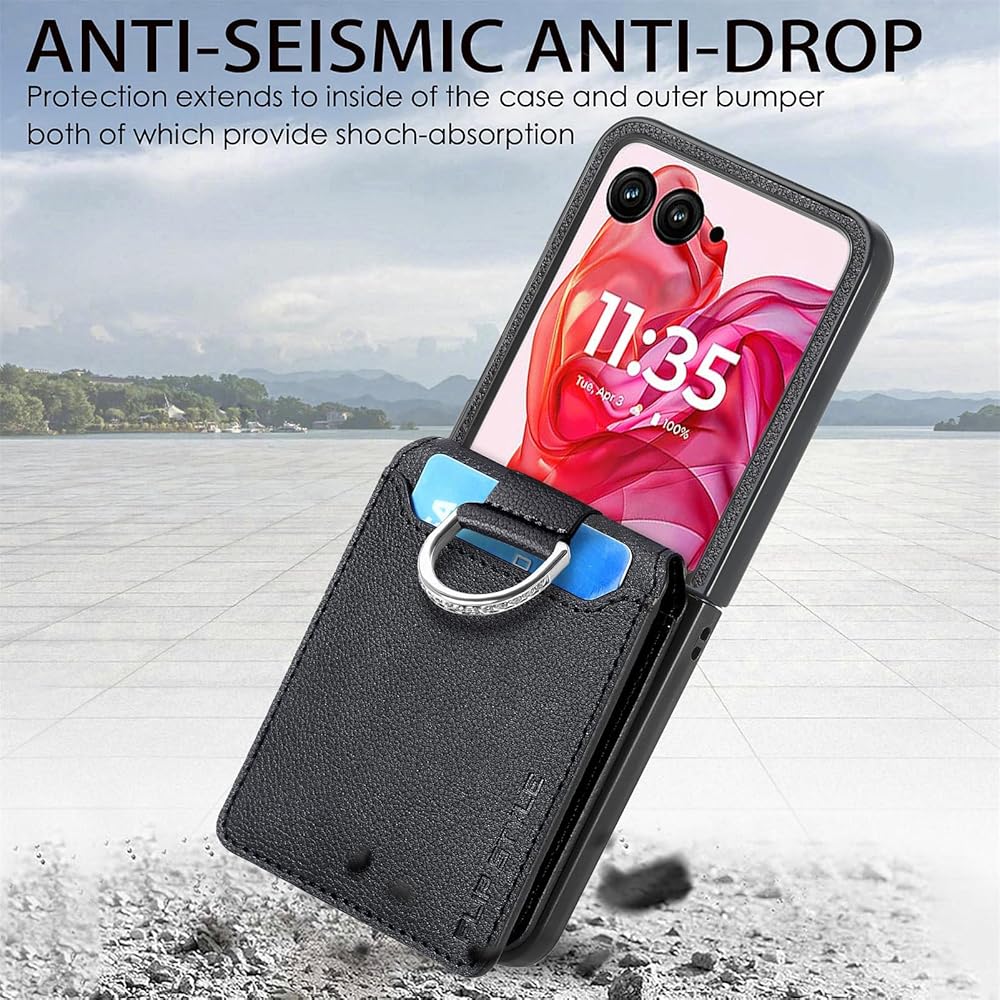 【Wallet-Card Holder】: The for Motorola Razr 2024 Case has multiple card slots built in, allowing you to easily carry your ID card, credit card or cash, making daily travel easier without taking purse to outdoor.Snapping the button is perfect to secure your stuff