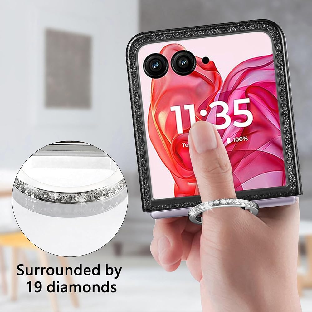 【Diamond Ring and Bracket Design】: This for Motorola Razr 50 case has a diamond ring on the back, which not only makes it more comfortable to hold your phone, but also ensures that the phone is stable and not easy to slip. The wallet card holder can also be easily converted into a vertical or horizontal bracket for your convenience to read or watch videos