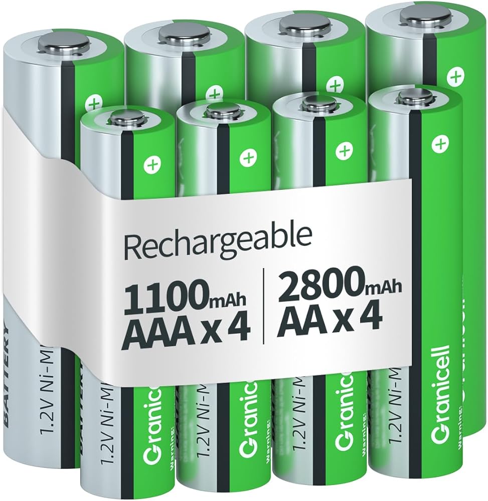 1300 Recycles & High Capacity: Enjoy up to 1300 recharges with Granicell's 2800mAh AA and 1100mAh AAA batteries, offering long-lasting power and excellent cycle stability
