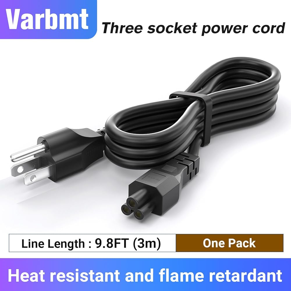 【 Safe and Durable 3 Prong Replacement Cord】 Varbmt 4FT Mickey Mous Power Cable , tested and listed by ETL for safety performance and compliance, is made from 100% pure copper material and environmental-friendly PVC material, which could provides protection against over heating and over loading for your devices. Ideal replacement power cord for most Laptop / Notebook / Personal Computer / TV / Monitor / Printer which needs a 3 prong Mickey Mous Plug.