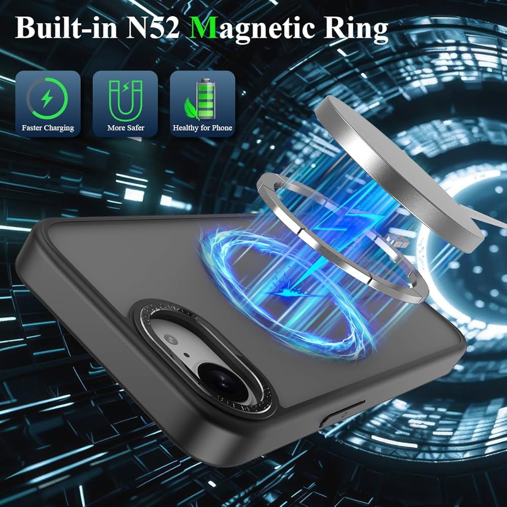 N52 Strong Magnetic Ring for Seamless MagSafe Accessories: Equipped with N52-grade magnets, ensuring secure attachment to Magsafe chargers, car mounts and wallets. Supports 15W fast wireless charging without removing the case.