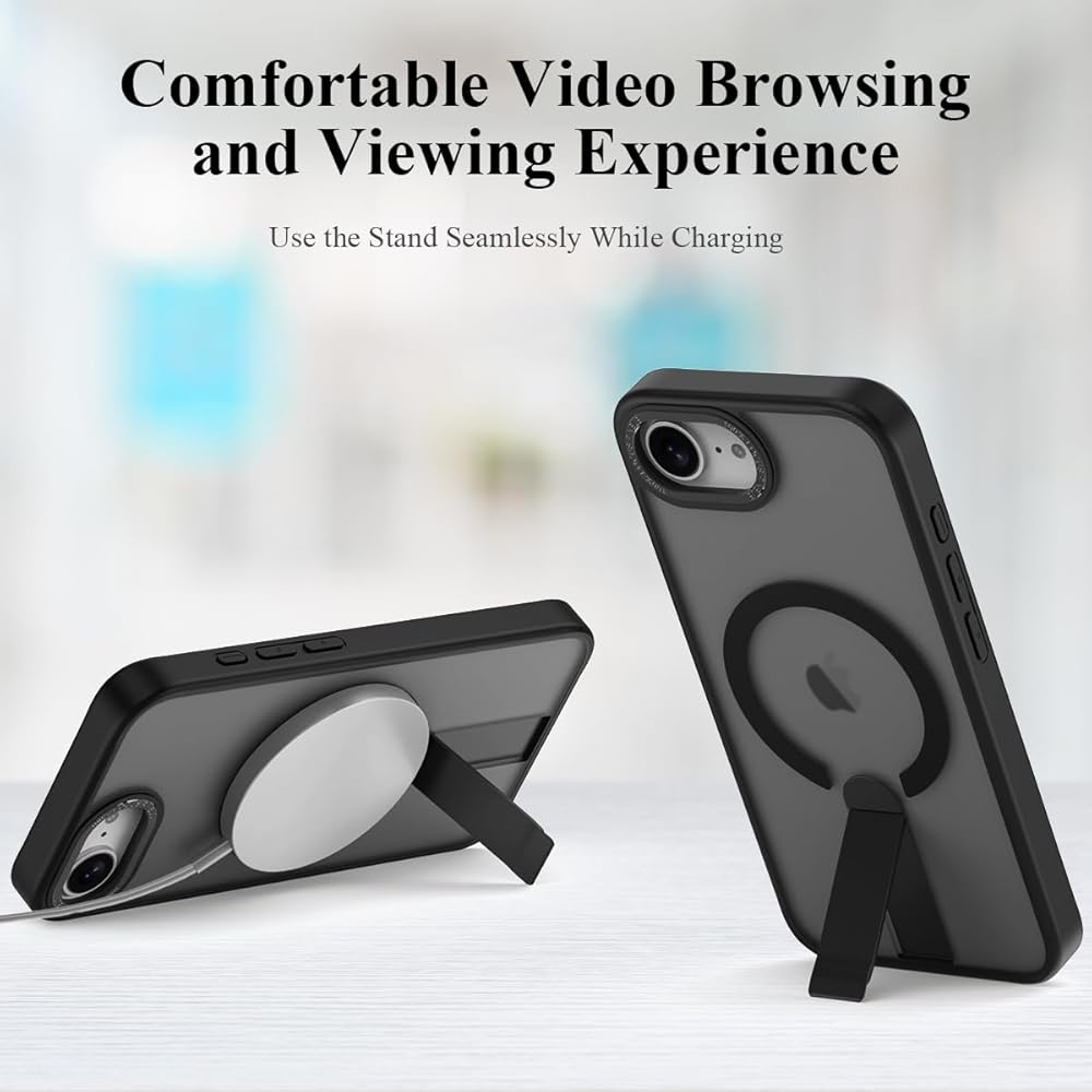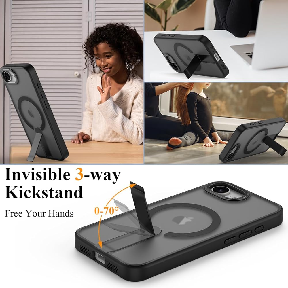 Adjustable Invisable Stand:The 3-way-stand case for iPhone 16e can provide more convenience while watching TV and FaceTiming.When the kickstand is fold,it's totally invisible,and the metal stand is sturdy enough not easy to break.