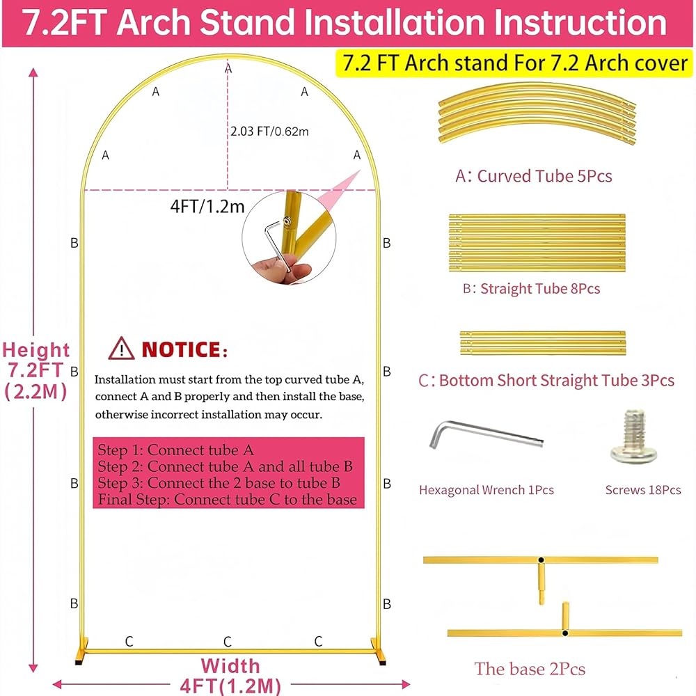 【Easy to Assemble and Carry】The wedding arches for ceremony is easy to assemble, Comes with easy to follow installation instructions. Easy to assemble and disassemble within 5 minutes.