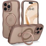 VENINGO iPhone 15 Pro Max Case,Magnetic Slim MagSafe Curly Wave Edge Translucent Matte Back Foldable Ring Holder Kickstand Shockproof Protective Phone Cover for iPhone 15 Pro Max 6.7", Desert Titanium