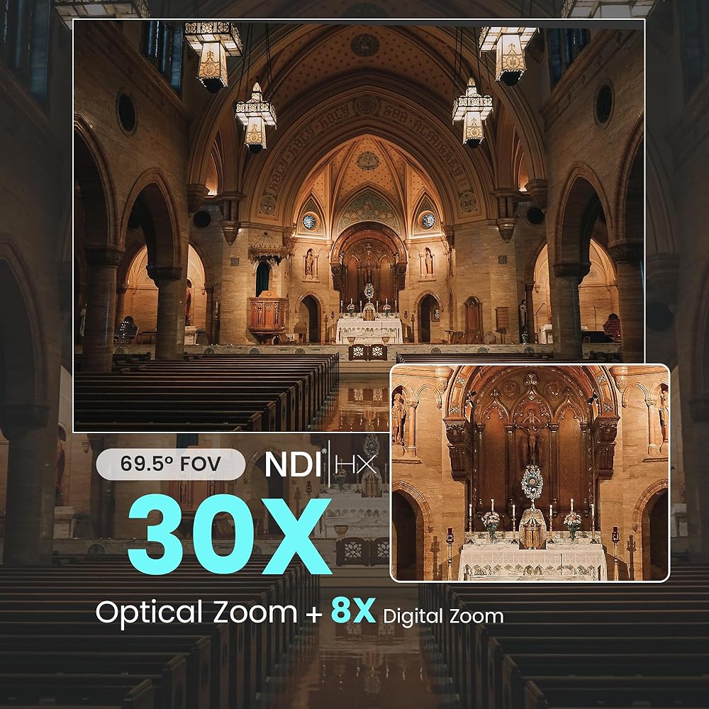 【𝐀𝐈 𝐀𝐮𝐭𝐨 𝐓𝐫𝐚𝐜𝐤𝐢𝐧𝐠 𝐏𝐓𝐙 𝐂𝐚𝐦𝐞𝐫𝐚】This NDI PTZ camera built-in leading image recognition and tracking algorithms When the camera's AI auto-tracking mode is enabled, the camera will automatically follow the direction of movement of the target object, accurately focus on the tracking of the portrait and automatically move the lens to provide a highly stable, smooth and clear images.