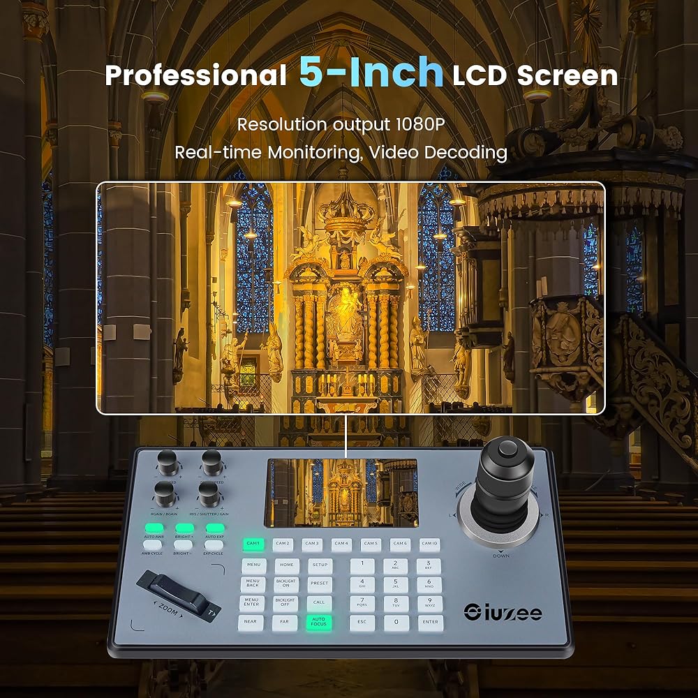 【𝐢𝐮𝐙𝐞𝐞 𝐍𝐞𝐰 𝐔𝐩𝐠𝐫𝐚𝐝𝐞𝐝 𝐏𝐓𝐙 𝐂𝐚𝐦𝐞𝐫𝐚 𝐂𝐨𝐧𝐭𝐫𝐨𝐥𝐥𝐞𝐫】This PTZ controller is equipped with a variable-speed 4D joystick and a 5-inch LCD screen with real-time preview, allowing you to easily control the camera's all-round rotation, zoom in and out of the lens, thereby bringing a more professional video production experience. Meanwhile, the PTZ controller also supports independent IP addresses and IE browsers to add configurations of front-end device parameters.