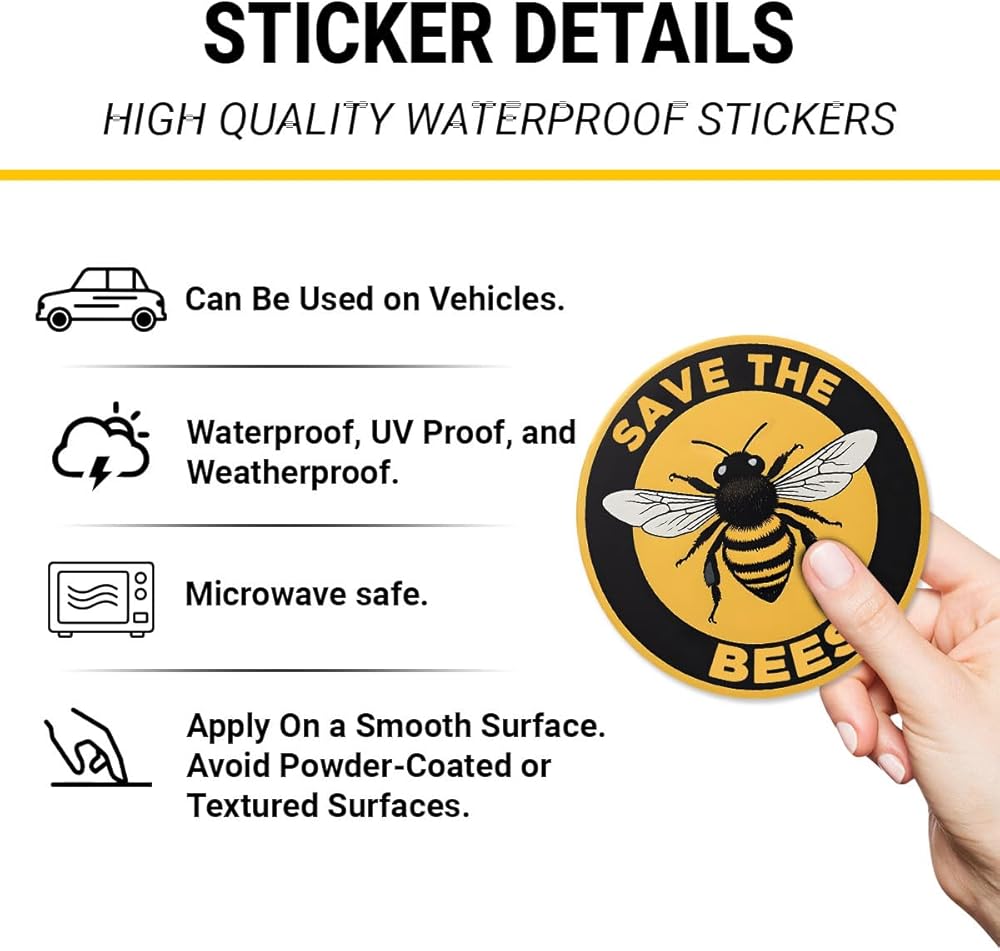 (3Pcs) Save The Bee Sticker, Round Save The Bees Sticker, Bee Sticker, Bumble Bee Decal For Car, Bee Bumper Sticker, Honey Bee Sticker - Stickers For Laptop Water Bottle Phone Car Window Helmet 3". Search us with: Save The Bees Honeycomb Sticker, Save The Bees Sticker, Save The Bees Decal, Bee Bumper Sticker, Bee Car Decal, Bumble Bee Stickers, Bee Decals, Bee Stickers Small, Bee Sticker ....