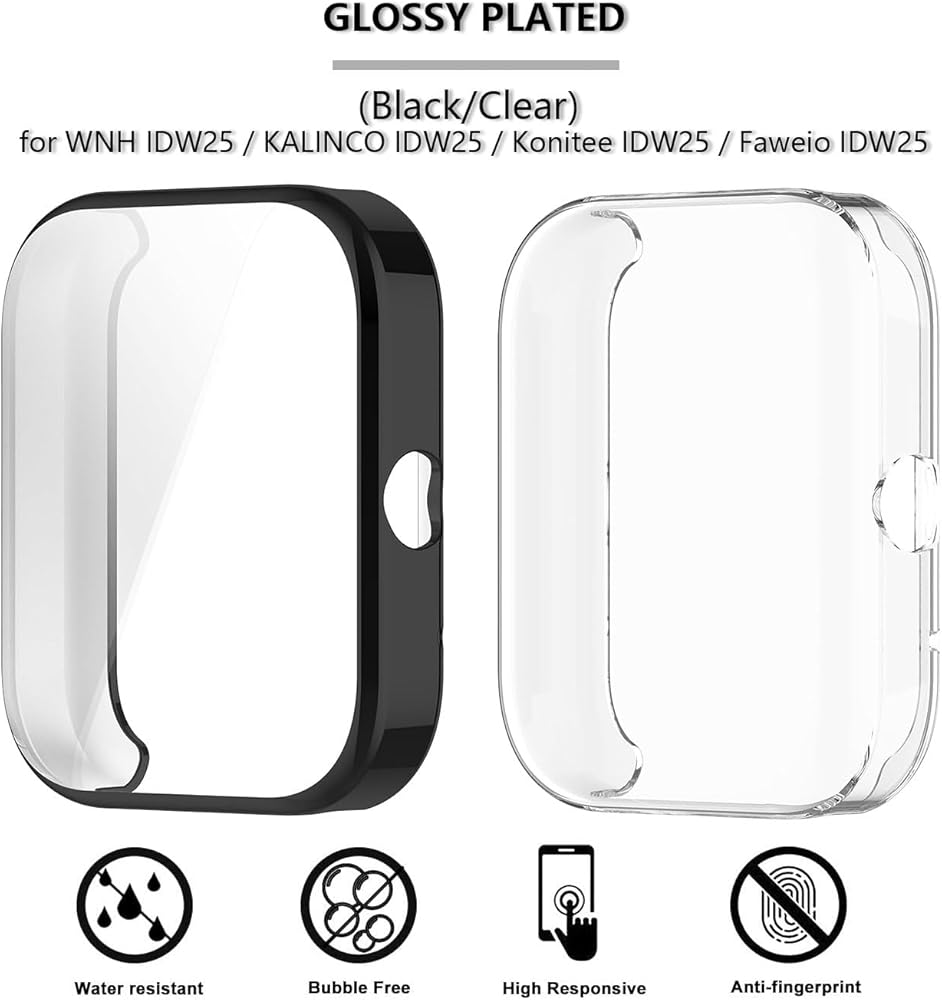 [Perfect Protective Case] - Msvueioe for WNH IDW25 / KALINCO IDW25 / Konitee IDW25 / Faweio IDW25 case screen protector that 3D curved edge & full coverage design for curved surface will completely bond with your smart watch face. Perfect accessory case with screen protector created for IDW25 will protect the screen from scratches and potential damage all around.
