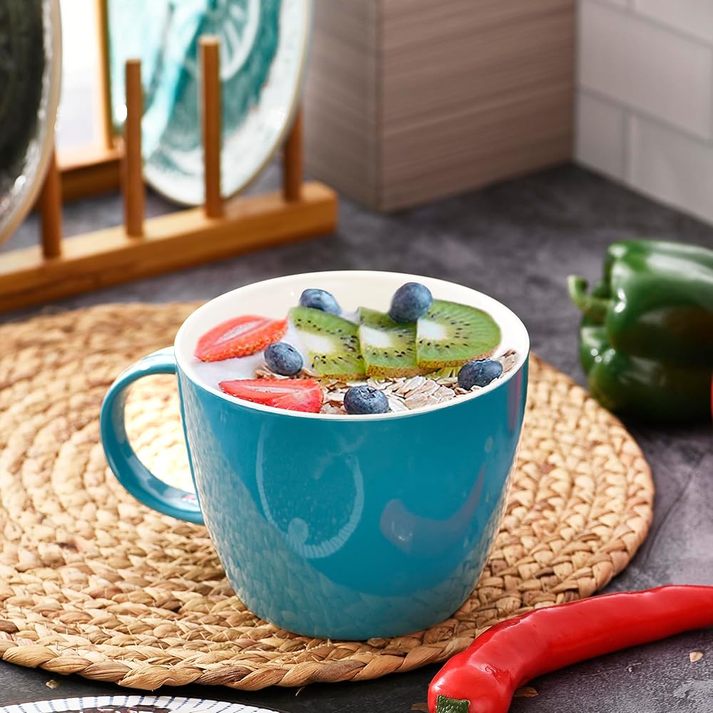30oz Ceramic Jumbo Coffee Mug Soup Bowl with Handle for Soup, Coffee, Tea, Ice Cream, Fruit, Cereal, Milk, Mocha, Cocoa and Mulled Drinks, Microwave and Dishwasher Safe, Aqua Blue
