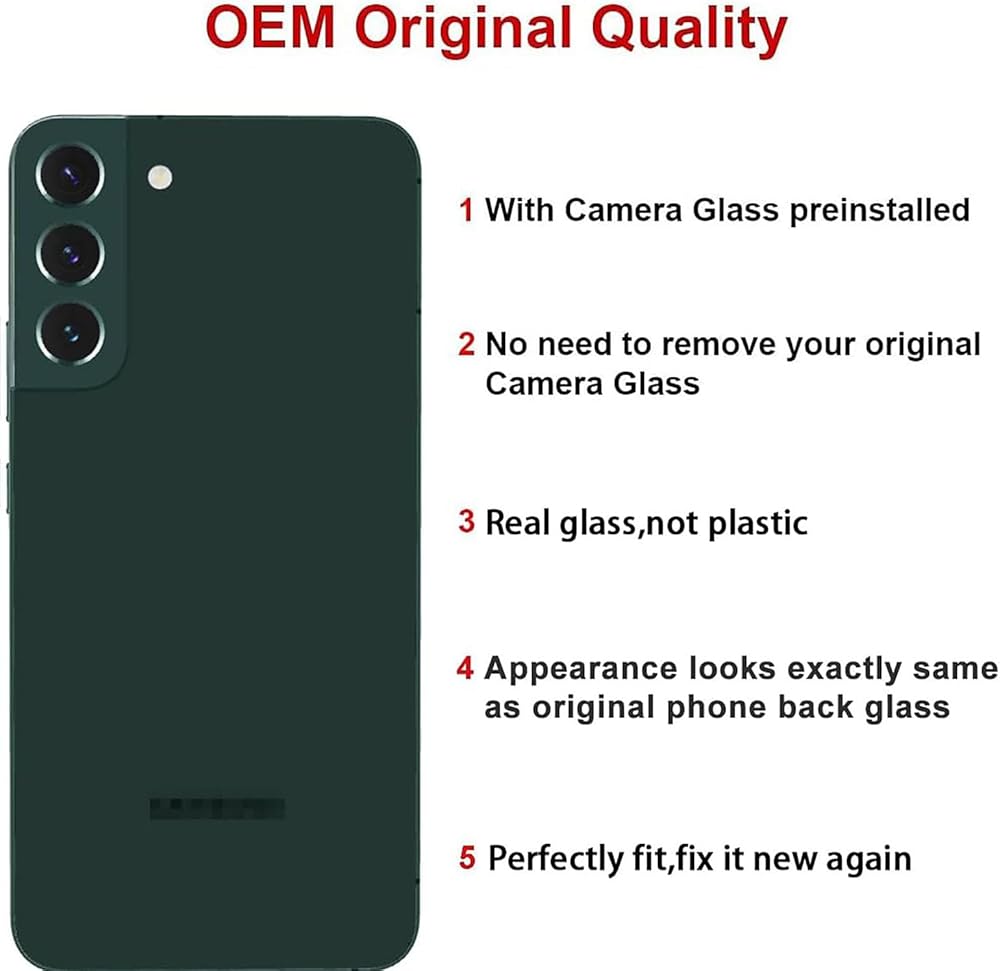 S22 Plus Back Glass Compatible Samsung Galaxy S22+ Plus Back Cover Glass Housing Door with Camera Lens & Pre-Installed Tape + Tools