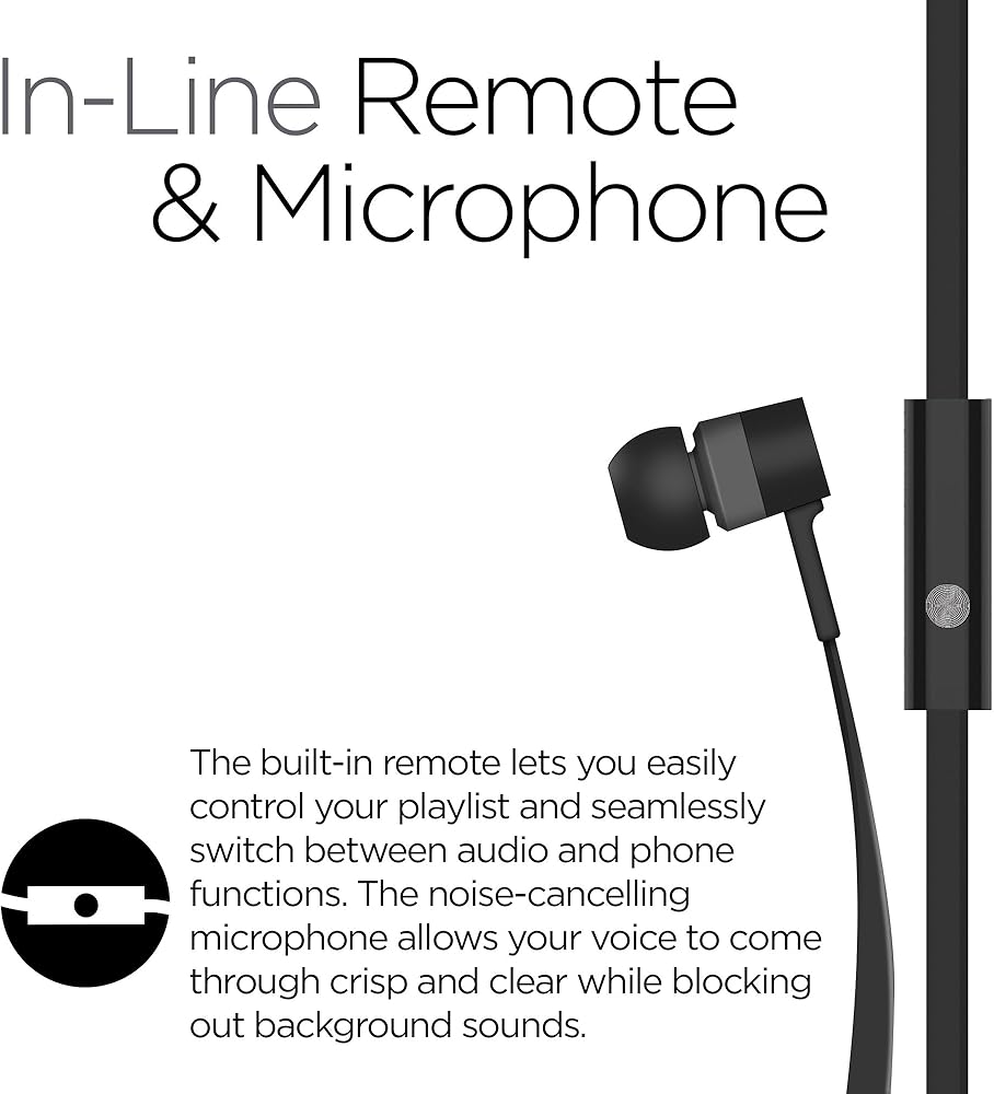 In-Line Remote and Microphone Enjoy hands-free music and calls. The built-in remote lets you easily control your playlist and seamlessly switch between audio and phone functions. The noise-cancelling microphone allows your voice to come through crisp and clear while blocking out background sounds.