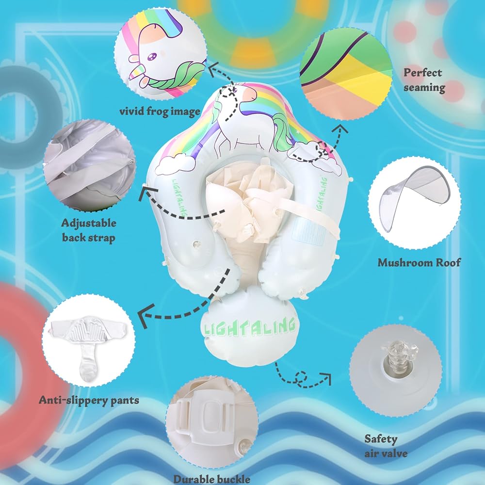 【Anti-flip Safety Swimming Pool Float for Kids】Our baby swimming float are heavy-duty construction and thicker design makes your baby more stable on water.no flip over safety support bottom,afford kids 3-36month weight around 45 lbs.