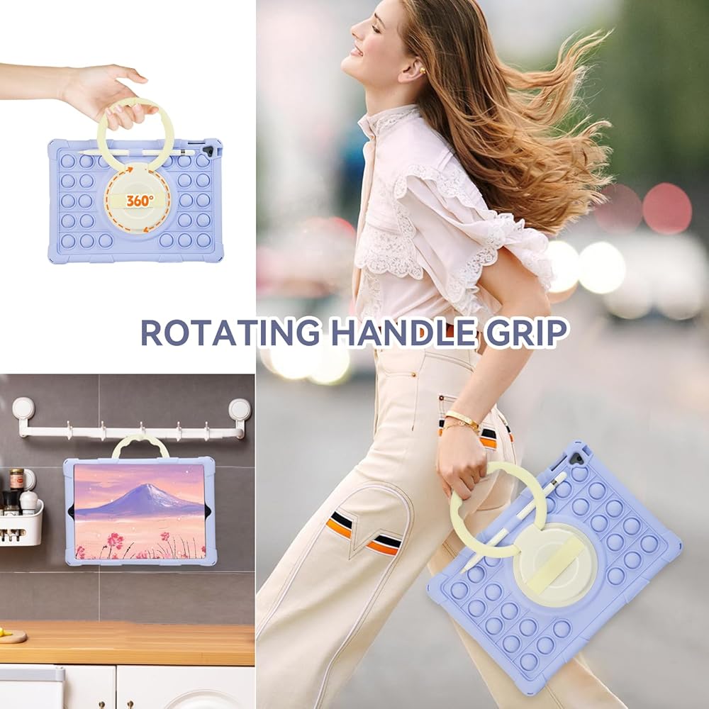 【360° Rotating Stand & Hand Strap】The 360°rotating kickstand easily position your ipad in a horizontal or vertical viewing,the hand strap designed to be easily adjustable to fit comfortably in one hand, providing a stable and adjustable stand for various activities, like reading, typing, browse websites or have video calls with friends.