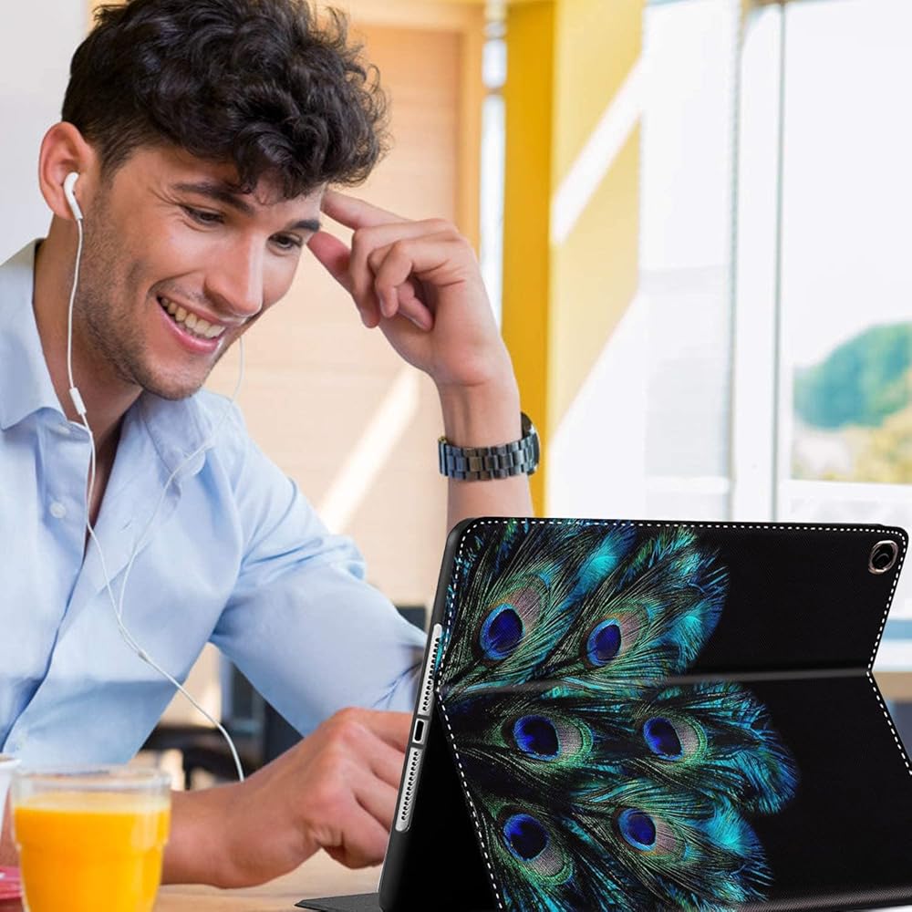 Case for iPad 9th/8th/7th Gen 2021/2020/2019 iPad 10.2 Inch Also Fit iPad Air 3th Gen 2019/iPad Pro 10.5 inch 2017,Standing Cover Case with Auto Sleep/Wake,Peacock Feather