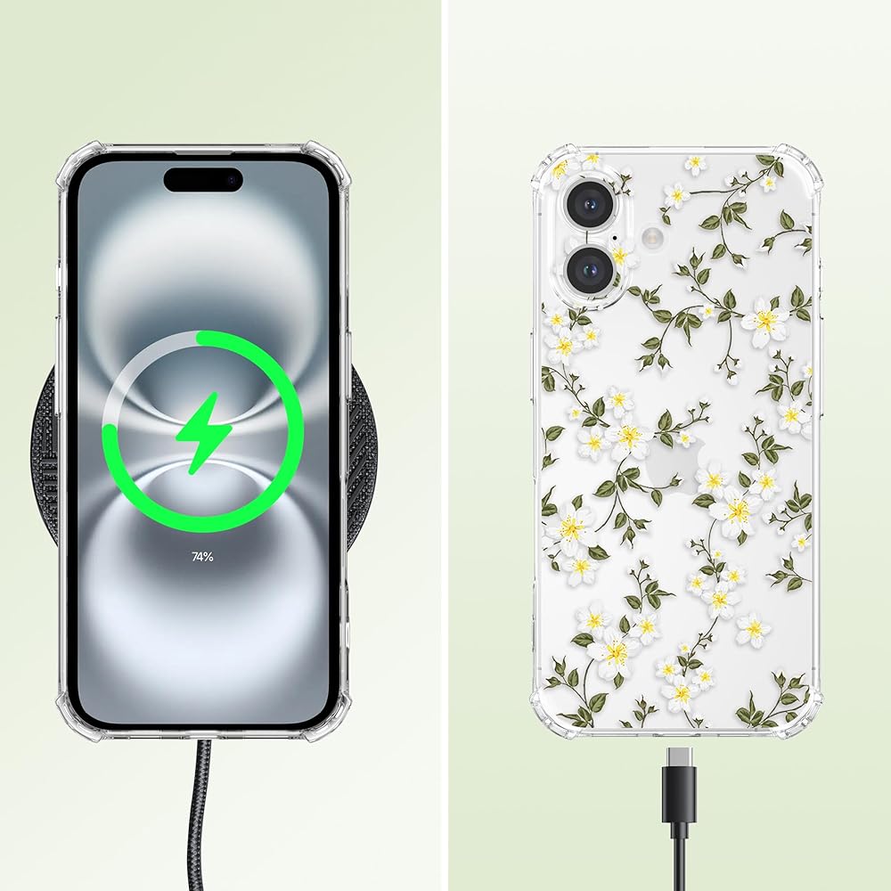 Slim & Fit Perfectly: This for iPhone 16 flower case is easy to install and remove. Precise cutouts for all buttons and function ports. This non-slip case is thin and lightweight that you could put it in your pocket and charge wirelessly. It also provides a smooth and comfortable grip feeling