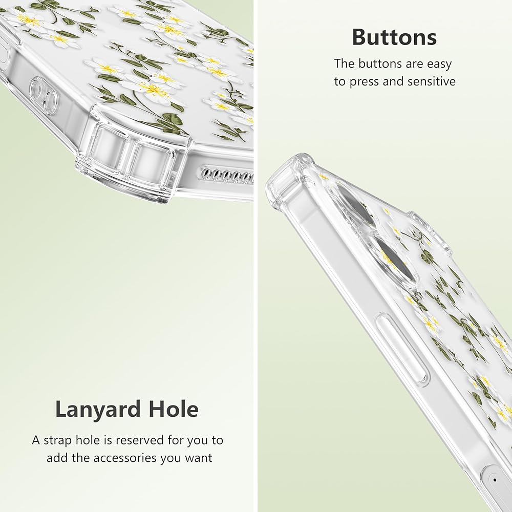 Lovely Design: We used harmless materials and sophisticated printing technology to make vivid floral pattern on this ZTOFERA for iPhone 16 cute phone case , which will make your phone look more unique and attractive. And it is designed with two little holes on the bottom left to tie the wrist strap or lanyard