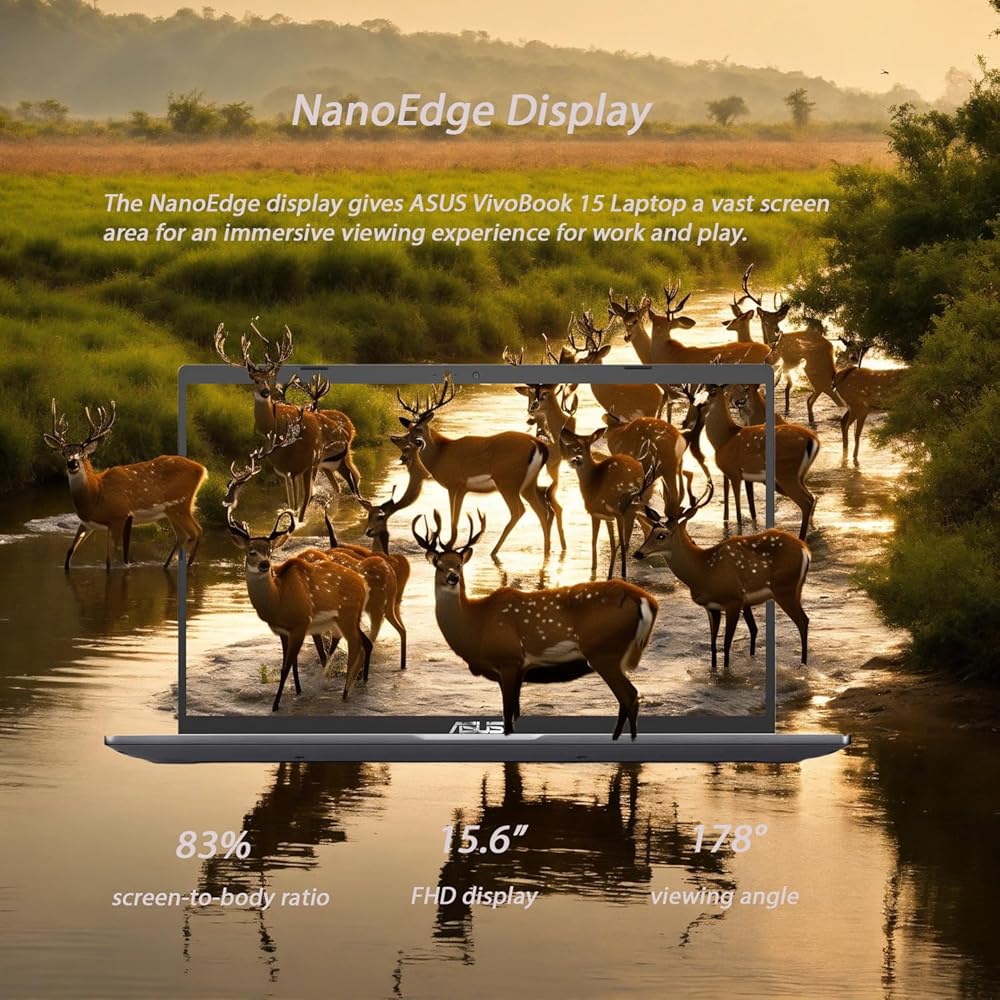 【Vivid Display】Enjoy stunning visuals on the 15.6-inch FHD (1920 x 1080) nano-edge bezel display, boasting an 83% screen-to-body ratio for an immersive viewing experience.