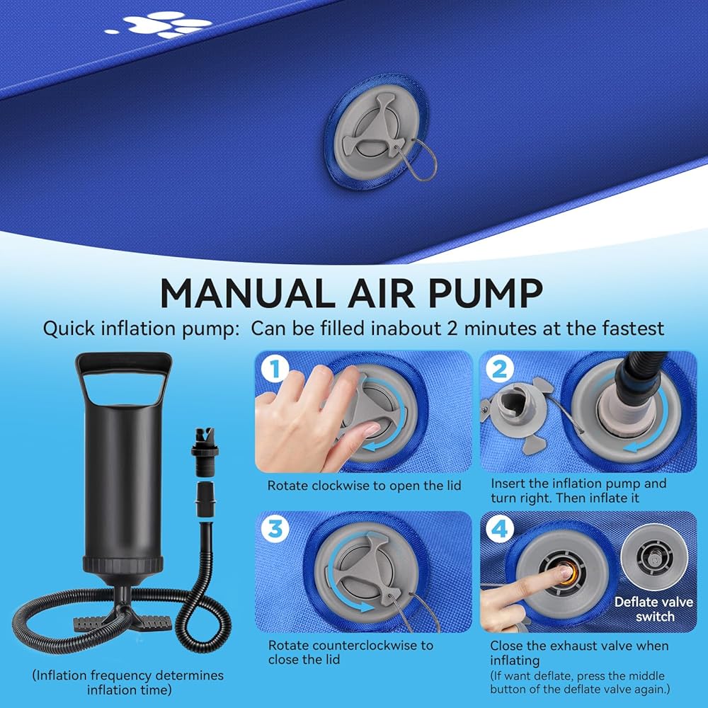 Inflatable Dock Platform, Dog Boat Ramp Floating Non-Slip Oxford and PVC Water Ramp for Dogs Pool, Dock, Lake with Traction Rope, Manual Air Inflation Pump Blue D(4.7ft x 3ft x 6in) Blue