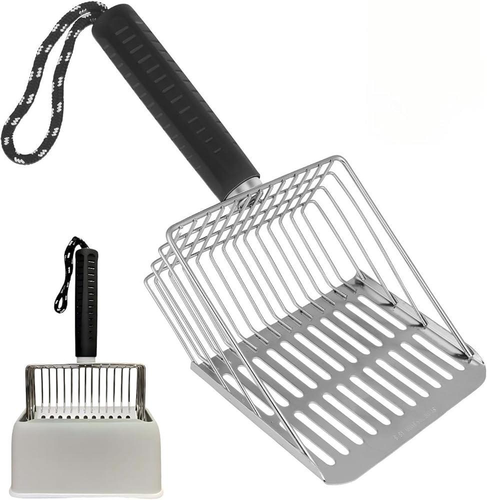 【Included Hook】:Our stainless steel cat litter scooper is equipped with a stainless steel hook, and the hook can be set in the place you think is suitable. The cat litter scoop handle has a hanging rope that can be perfectly paired with a hook for use.
