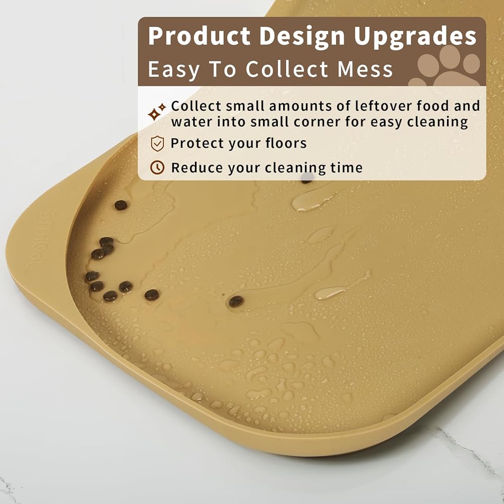 Safe, Healthy Materials - Our non slip elevated pet food placemats for pets are made from high-quality food-grade silicone that is non-toxic and 100% free of harmful chemicals like BPA, PVC, and phthalates. It can withstand temperatures up to 464°F, making it durable yet safe - the perfect choice for your kitten, dogs, or any pets.