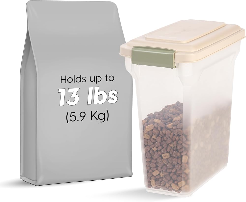 OPTIMAL FOOD STORAGE: This IRIS USA dog food storage container can hold up to 13 pounds of pet food (capacity varies by type of pet food), keeping it fresh and free from pests with its airtight lid, ensuring your dog's meals are always delicious.