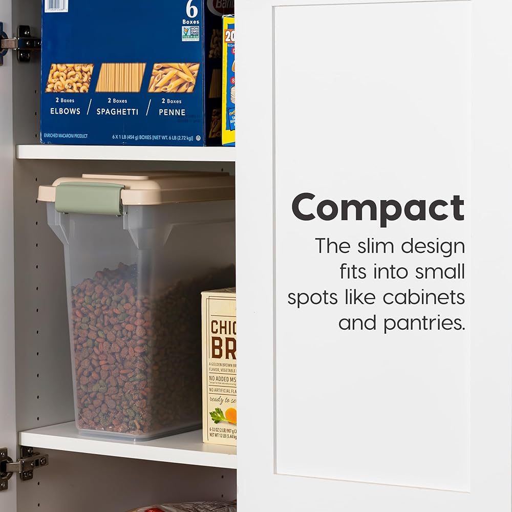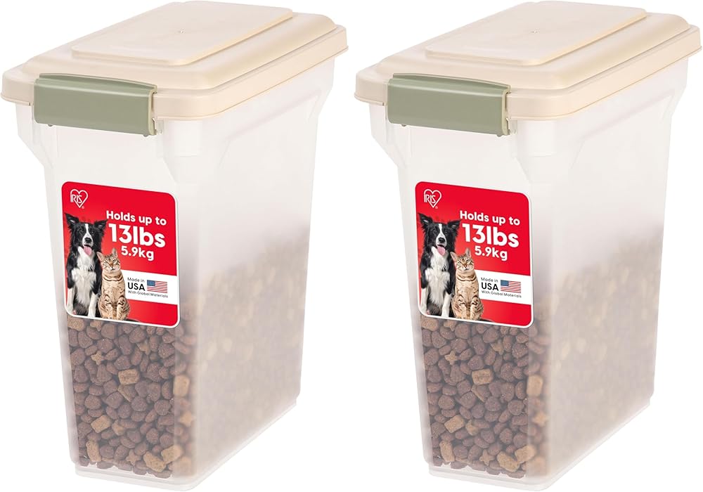 IRIS USA WeatherPro Airtight Dog Food Storage Container, Up to 13 lbs, for Dog Cat Bird and Other Pet Food Storage Bin, Pet Supplies, Keep Fresh, BPA Free, Clear/Almond (Pack of 2)