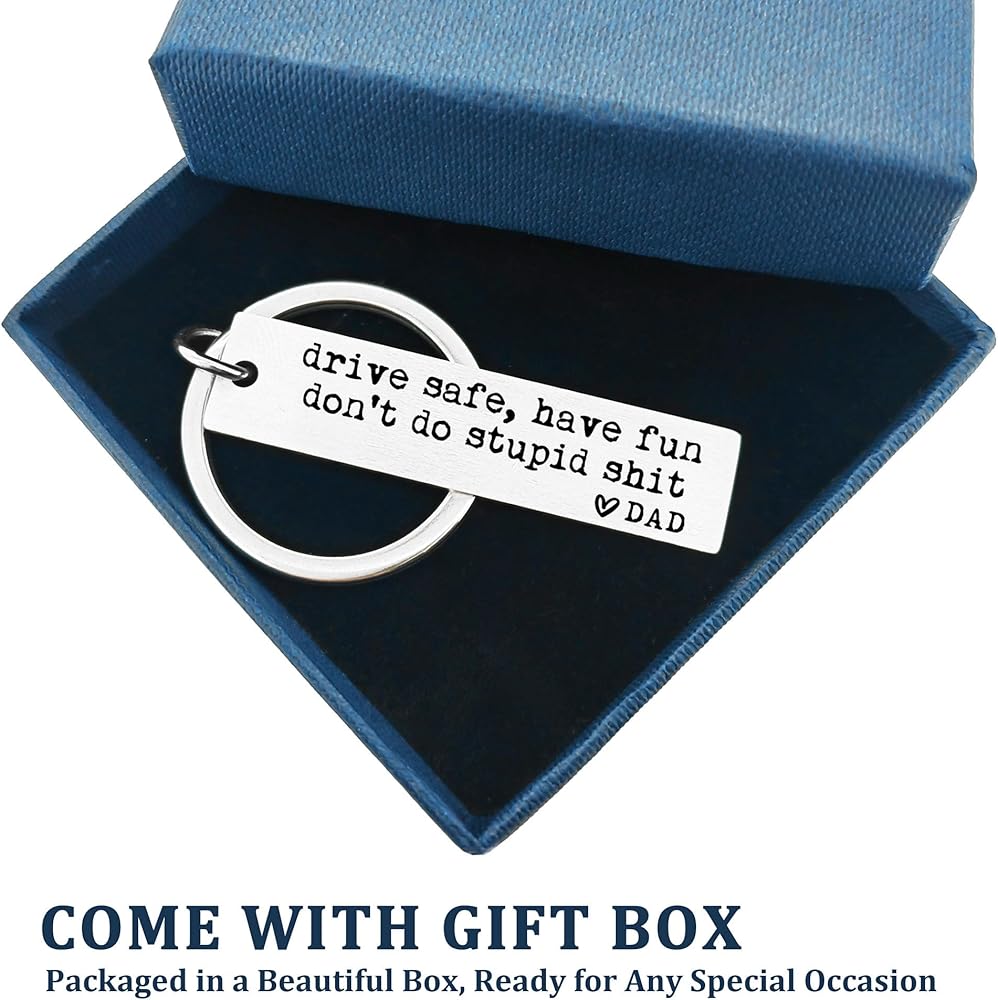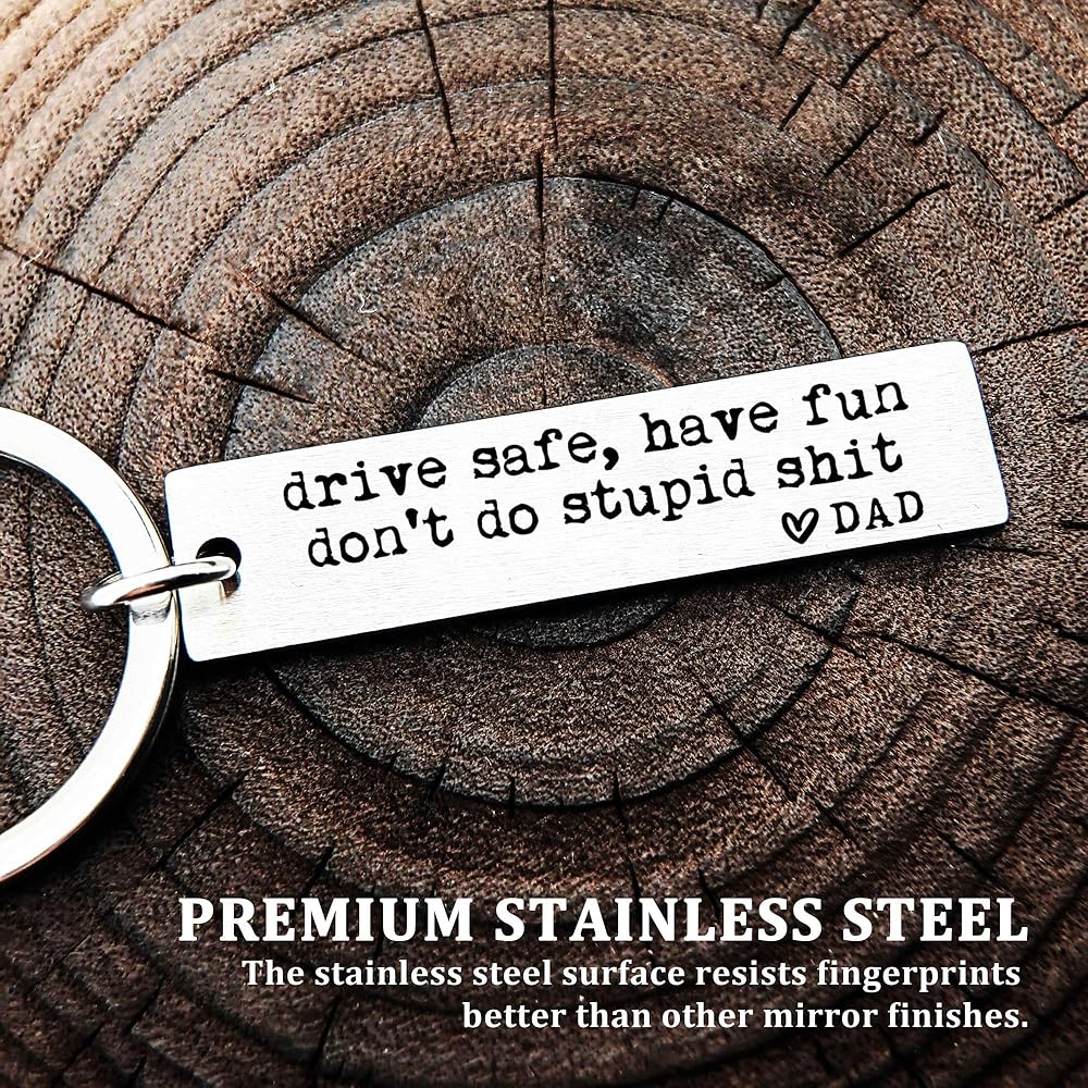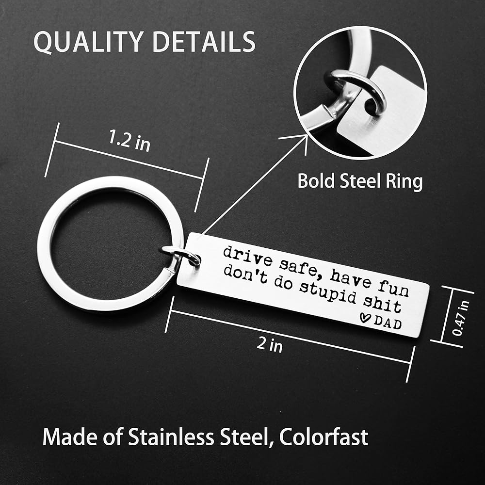 Drive Safe Keychain for Son Daughter – from Dad Stainless Steel Engraved Key Ring, New Driver Sweet 16 Graduation Birthday Gift, Safe Driving Reminder Keepsake