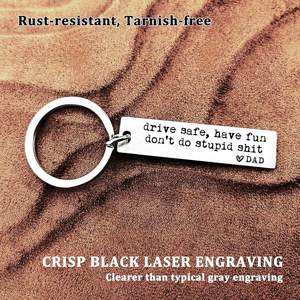 Heartfelt Reminder: This laser-engraved keychain features the message "Drive Safe Have Fun Don't Do Stupid Sh*t," offering a thoughtful reminder for your loved ones to stay safe on the road.