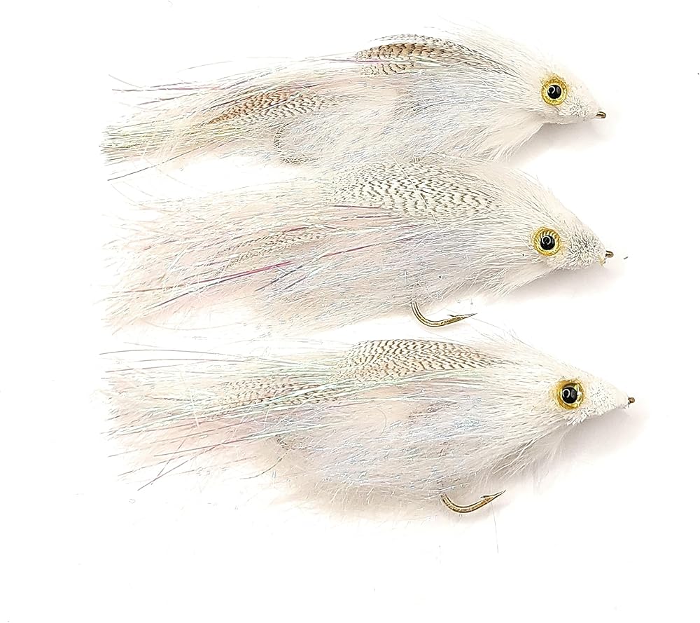 The articulated streamer is crafted with the greatest care to achieve the highest quality. We only use prime materials to ensure durability. The Diver's head is shaped flat and wide to drastically increase side-to-side movement in the water that is similar to a spoon. The fly moves while being stripped in still water or swung in water current. The pattern imitates an injured fish that is trying to swim away from bigger fish. This Diver fly is suitable for fishing on rivers and lakes. As a multi-species pattern, these flies can be fished throughout the year and will yield results in any season. These premium quality flies are tied on streamer hooks # 4 on the front and #6 on the back, 3 Beads between the hooks, mallard feathers, .018 braided wire, Dubbing, Deer hair, Flash, and a hidden Tungsten bead to drive the fly down