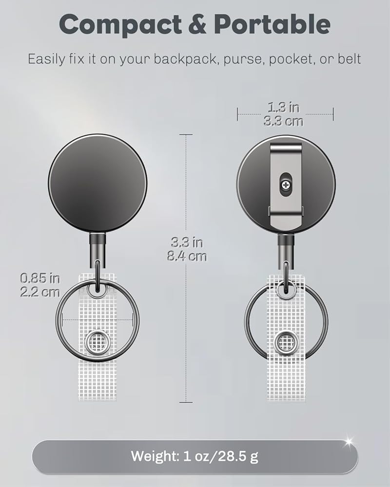 Heavy Duty: The retractable keychain comes with a robust zinc alloy casing. Super tough and reliable for constant use. It won't be broken easily even if dropped or bumped frequently