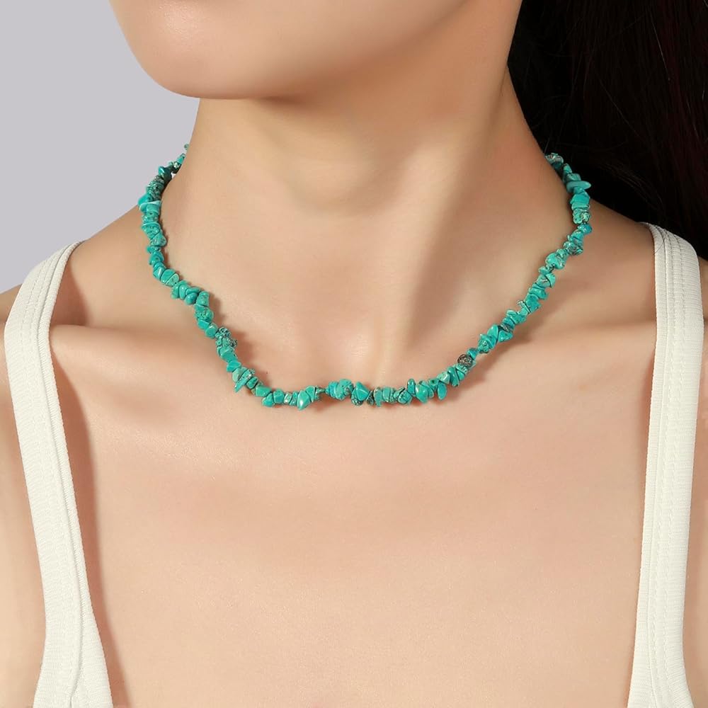 Raw Turquoise Necklace for Women 5-8mm Handmade Turquoise Beaded Necklace Turquoise Choker Necklaces Natural Stone Necklace Gemstone Necklace Turquoise Jewelry for Women