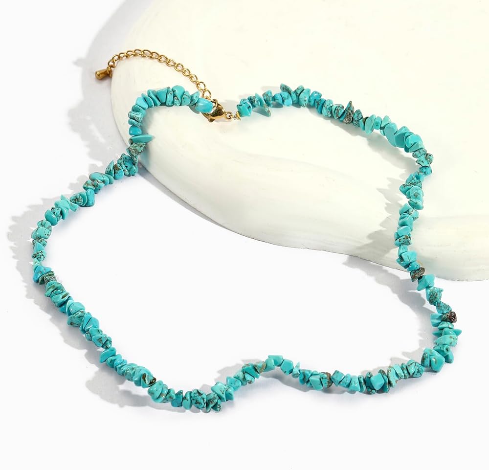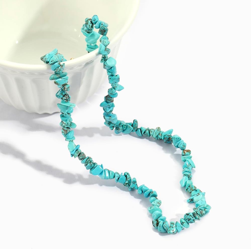 Quality Materials: This crystal beaded necklace is carefully selected 5-8mm raw turquoise stone beads, which has high polished smooth surface,comfortable to wear and can long time to wear
