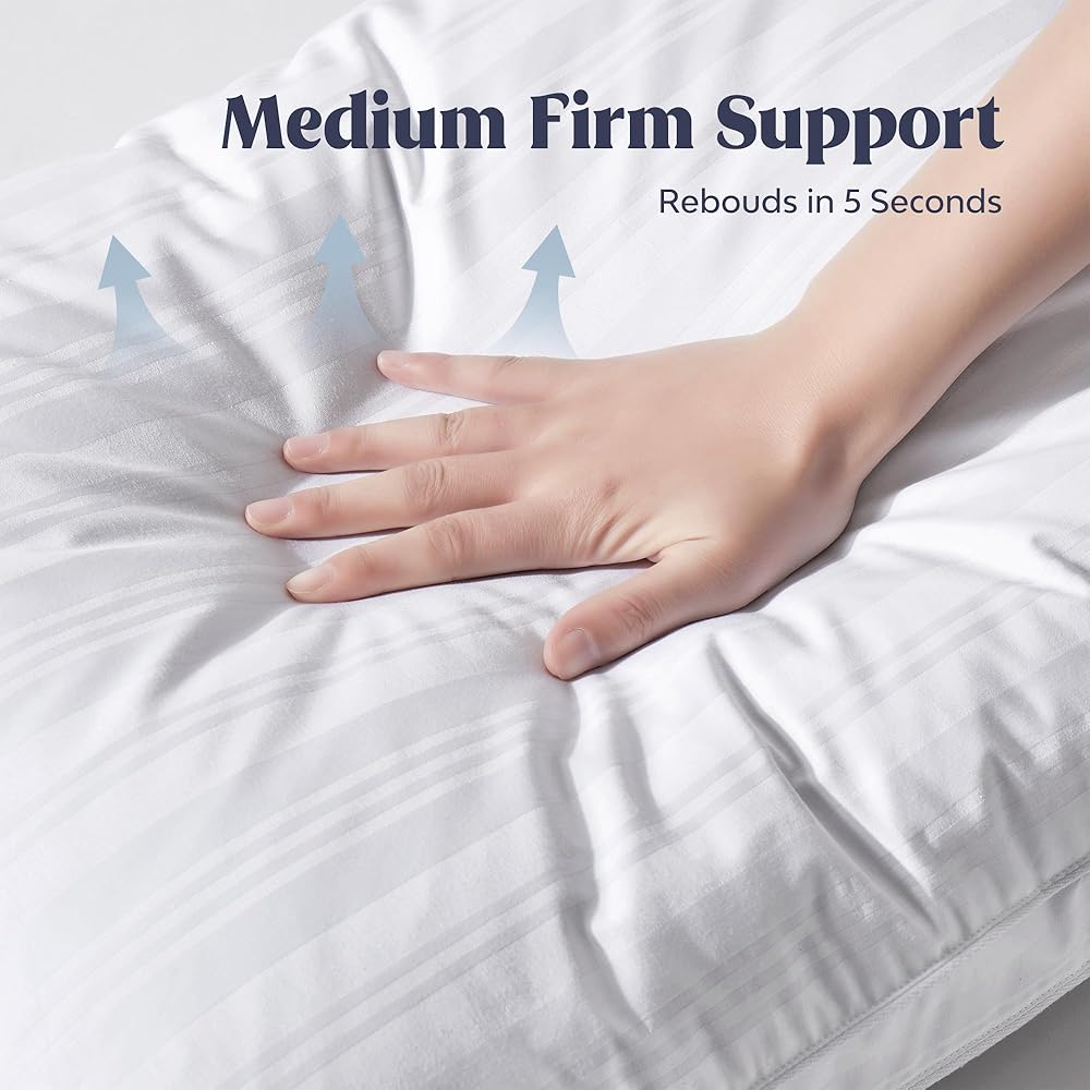 Better Support & fluffier: The soft fluffy pillows for sleeping not only maintains the support of a feather pillow, but also has the softness and fluffiness of a microfiber pillow, giving you unimaginable softness and comfort. Provide better support and care for your neck and spine while you sleep, easing pressure or soreness. Best of all, the excellent rebound will make the pillow core will quickly regain its shape after you leave.