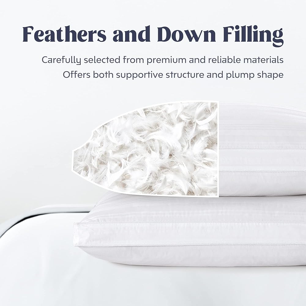 Softer & More Comfort: Our upgraded feather down pillow are filled with 90% feathers and 10% down, more ergonomic design, so they're softer, fluffier, more breathable, and more supportive than before. -Whether you're a supine, side or stomach sleeper - our pillows have you covered! Allows you to sink into a cloud of softness and comfort at any time, giving you better relaxation and improved sleep!