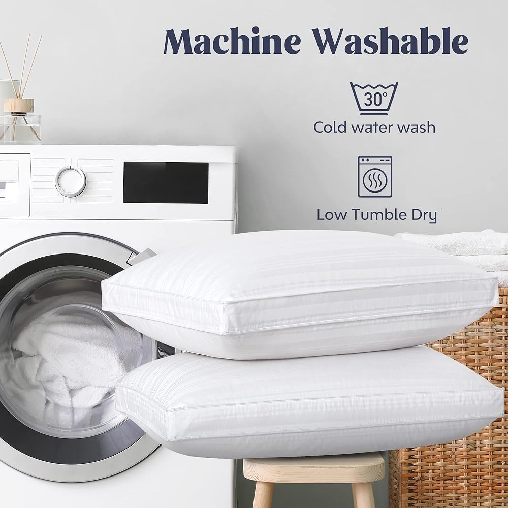 Easy to Care: The pillows queen size set of 2 can be washed directly in the washer or dryer to save you more time. Please wash them at a low temperature, then dry them naturally at a low temperature or, remember to pat them easily to quickly restore the fluffiness, and they are always as good as brand new even after repeated washings.