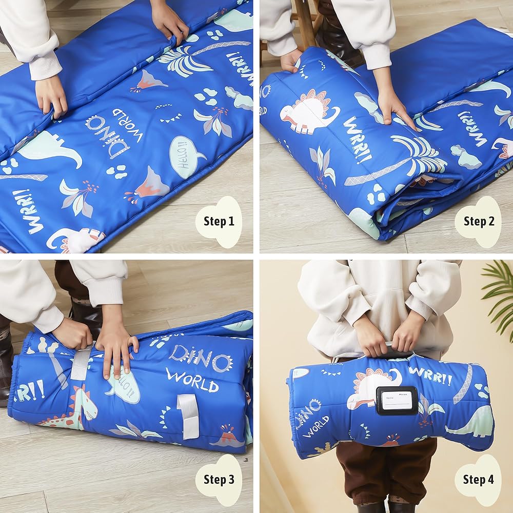 Convenient design: Morais toddler nap mats adopt a convenient fastening strap and handle design, which can be rolled up and is very lightweight. Its travel friendly design allows your child to easily carry their sleeping mat to and from school, stay overnight, and more.