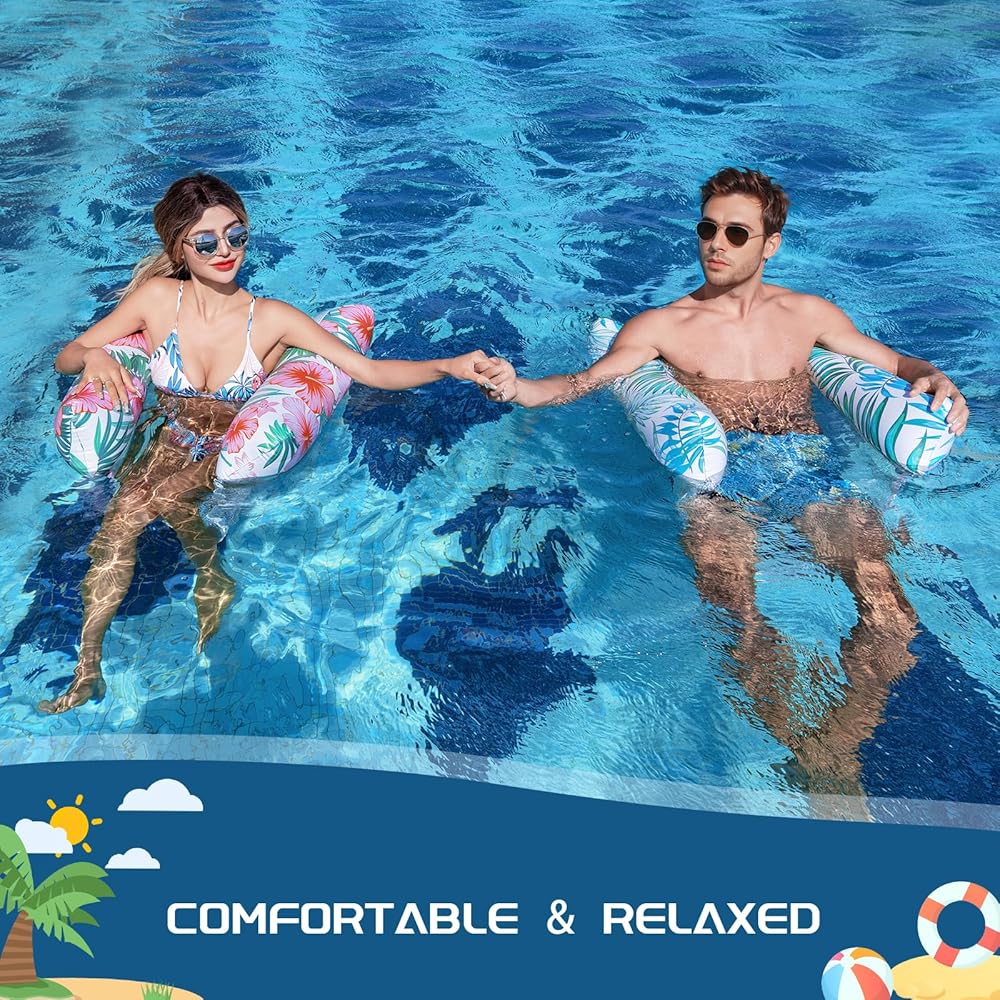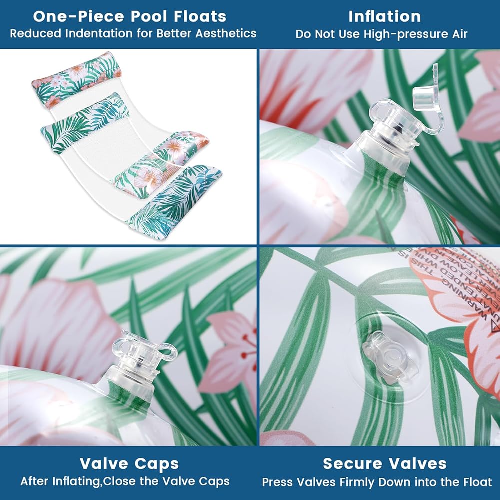 Great Value: 2-pack of uniquely designed pool float lounger. Different from the universal style, the three-pieces design and green leaves and pink flowers pattern make the pool float hammock more exquisite, making you a bright presence in the pool. Suitable for a wide range of people: children and adults from 4-6 feet tall