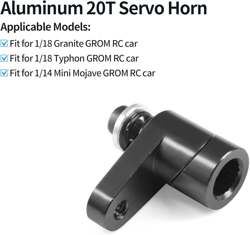 Pack listing: 1* 20T RC Servo Steering Arm for ARRMA 1/18 GRANITE GROM/1/18 TYPHON GROM/ 1/14 Mini MOJAVE GROM RC Parts.