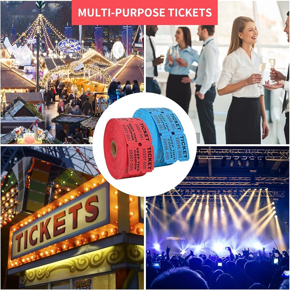 Color: blue,green,pink,orange,red, yellow, white,brown product Package:green and red raffle tickets double rolls ,a roll of 1000 tickets , 2 Rolls, total 2000 tickets