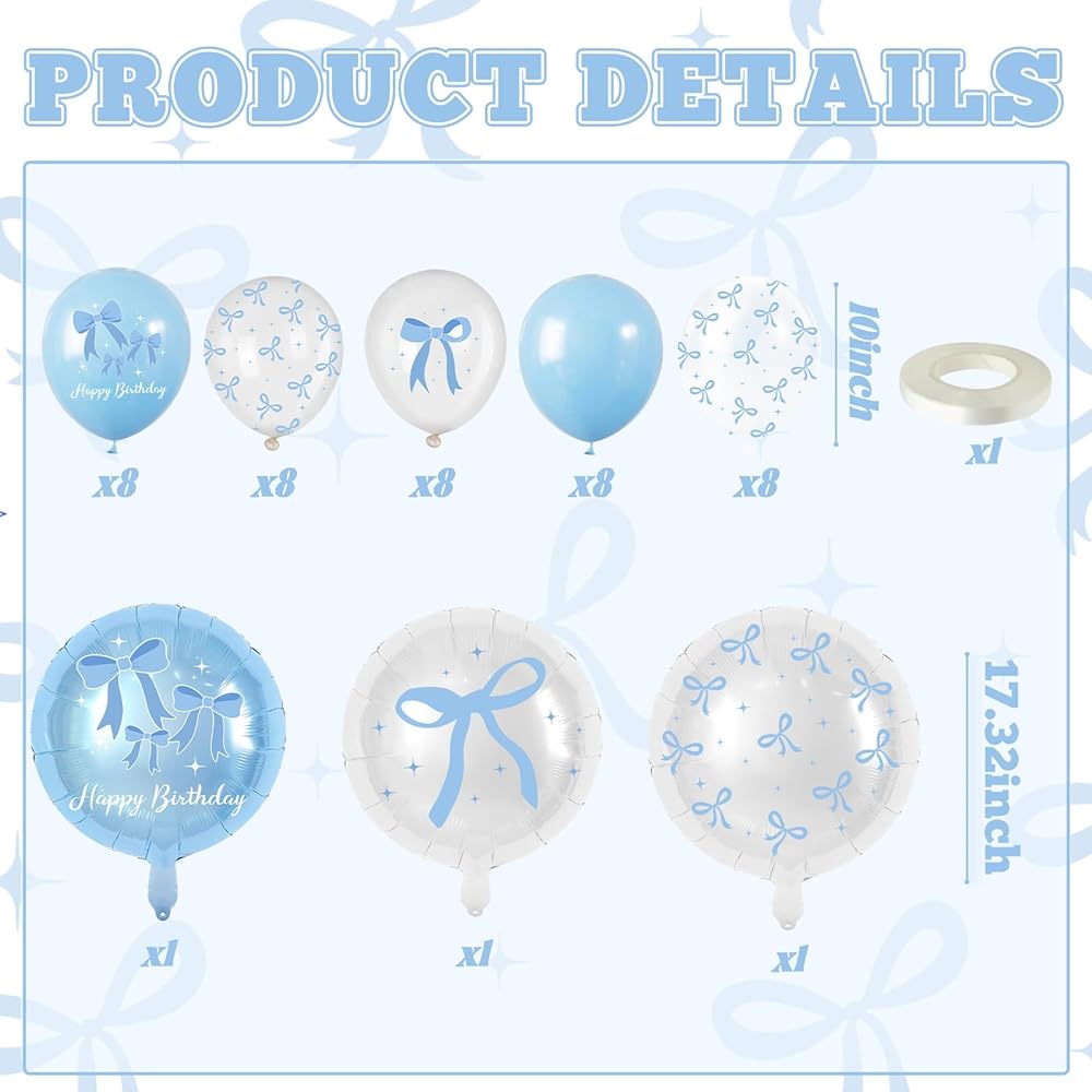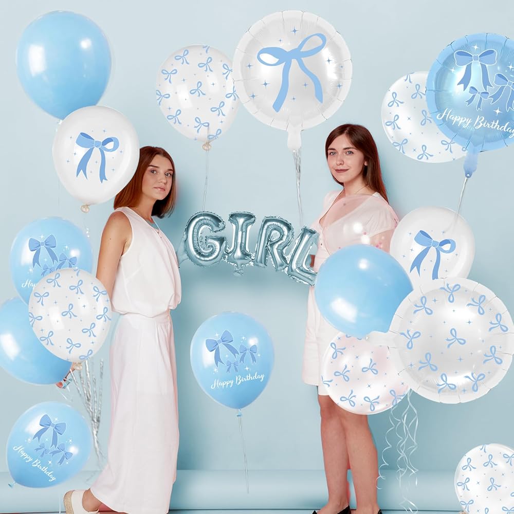 43Pcs Blue Bow Balloons Party Decorations - Coquette Bow Birthday Decorations Blue and White Bow Themed Birthday Balloons for Girls Baby Shower,Bachelorette Party Supplies