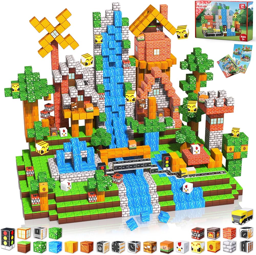 Magnetic Blocks - 150PCS Magnetic Building Blocks Road Forest Magnetic Cubes - STEM Toys for Montessori Toddler Birthday Gifts -STEM Sensory Construction Toys for Kids Ages 3+ for Boy & Girl